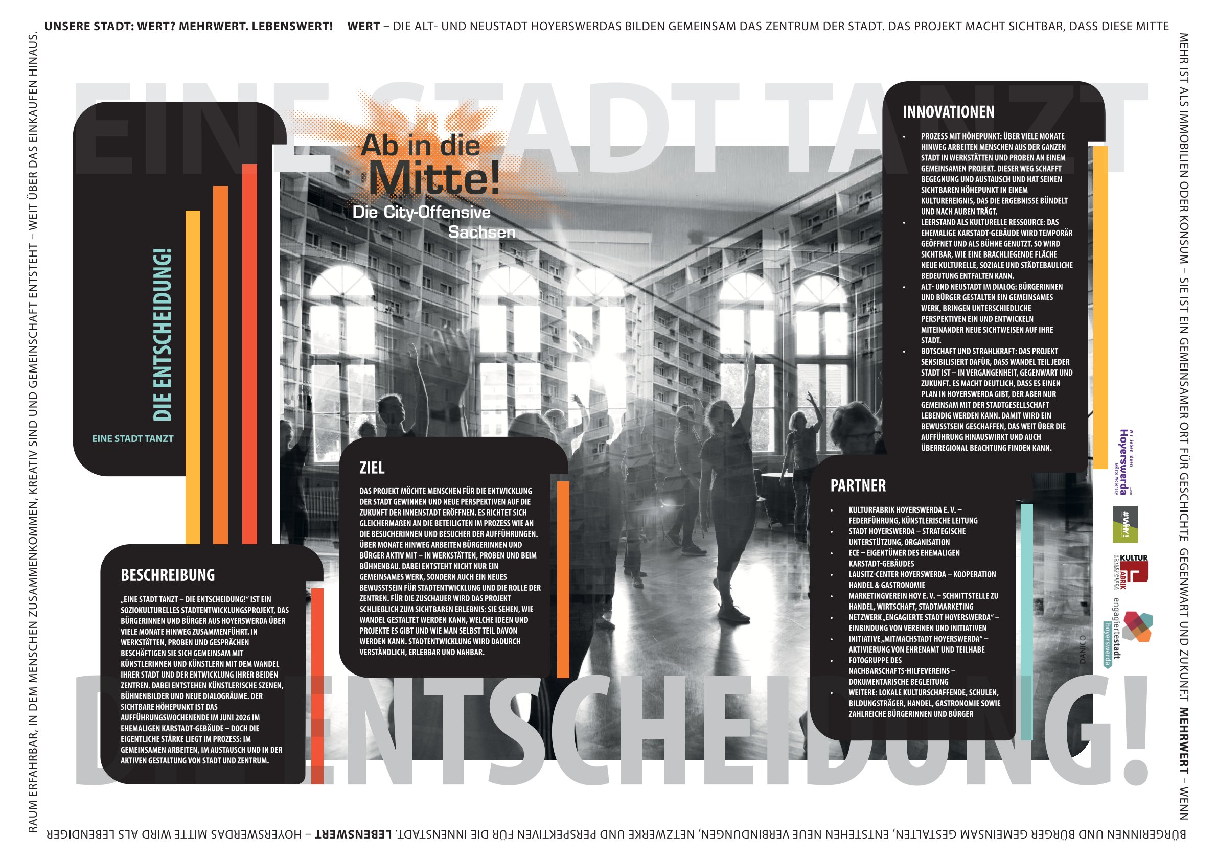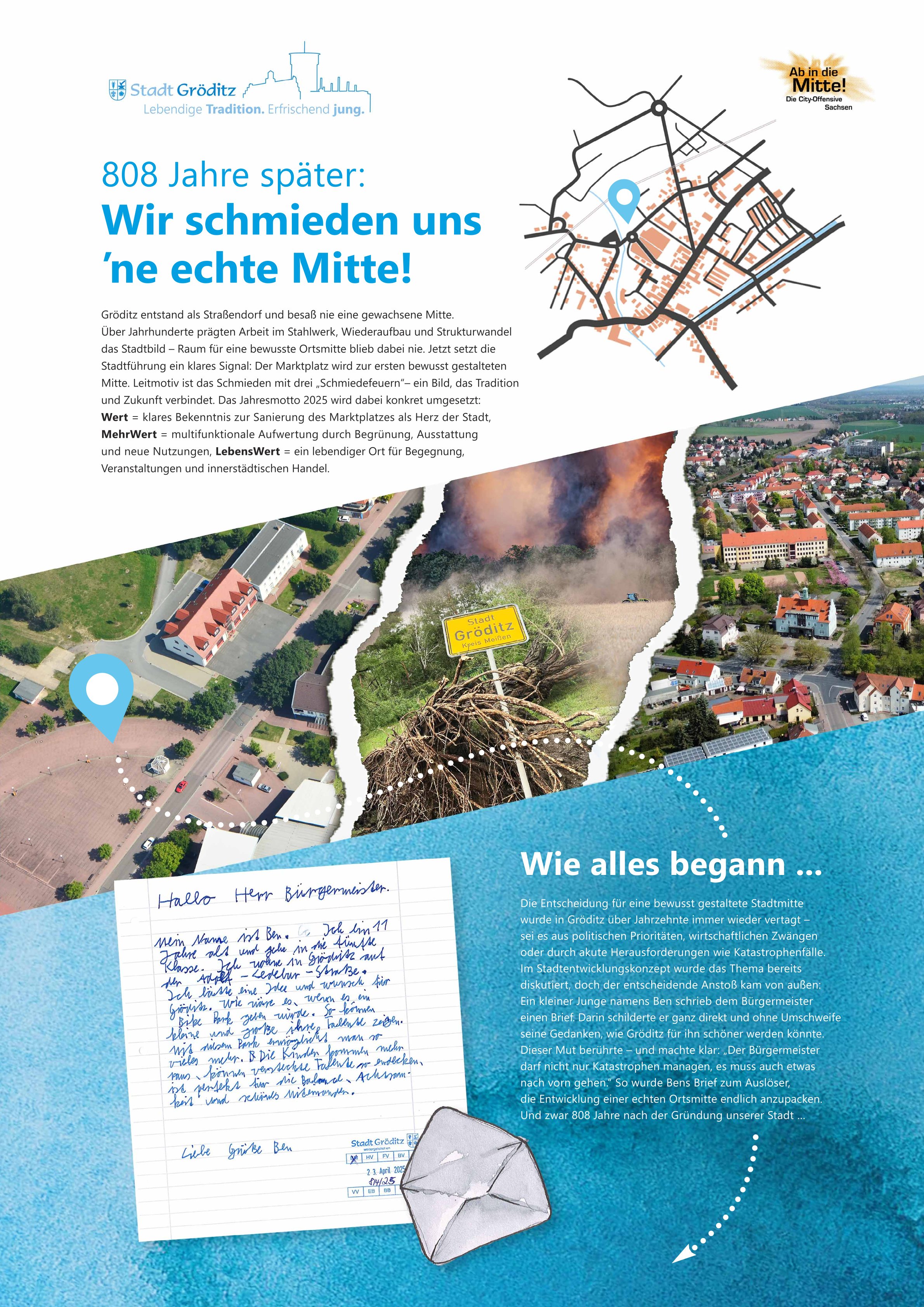 Erneut startet der Innenstadt-Wettbewerb "Ab in die Mitte! Die City-Offensive Sachsen" im Jahr 2026. Alle sächsischen Städte und Gemeinden, die ihr Zentrum attraktiver gestalten möchten, sind herzlich zur diesjährigen Auftaktveranstaltung des Innenstadt-Wettbewerbs in Sachsen eingeladen